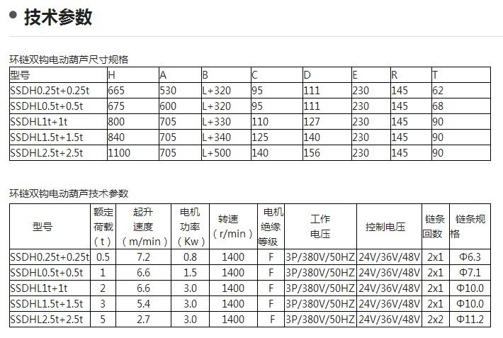 HSY雙鉤環鏈電動葫蘆: